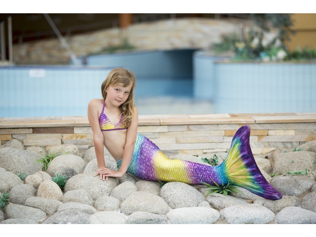 Kostým mořská panna Happy tails je navržen tak, aby při plavání dobře přilnul k tělu a byl pohodlný. Vždy zvolte odpovídající velikost podle tabulky velikostí.
