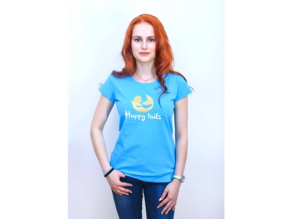 TRIČKO HAPPY TAILS se zlatým potiskem MODRÉ / dámské